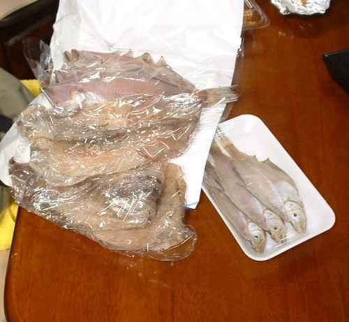 トレーに入った小ぶりのひらめは無料で配られたもの