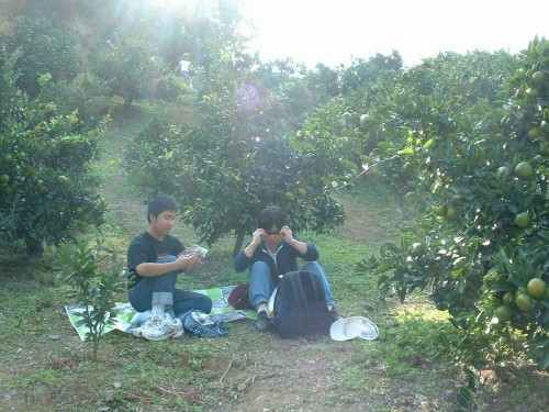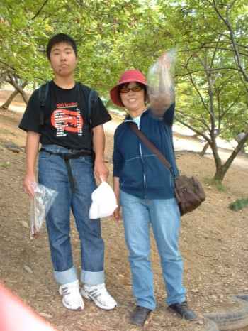 | クリ拾い もう10月半ばと言うのに、今年の秋はいつまでも暑い日が続いている。 実りの秋でもあるし、家の中でくすぶってるわけにもいかないので、 いい自然を求めて出かけることにした。さて、行き先はインターネットで・・・、 車で1時間以内で・・・、適当に遊べて・・・、美味いものも食べて・・・、 手軽なところで「南楽園」と名のつく体験型農園に決めた。 だいたいみかん狩りがメインだが、みかんはまだ青く「クリ拾い」をやってる。 クリ拾いなんて子供のごろ裏山でやったがそれ以来やったことがない。 実は、クリに関しては幼少に頃からほのかに懐かしい思い出がある。 田舎育ちの自分の家は田んぼに囲まれ、すぐ後ろにはクリの木もいっぱいあったものだ。 秋になると山にクリを取りに行った。木にぶらさがってるイガグリを下から木切れで 叩き落すのだが、これが結構難しい。イガグリも落とされまいとしっかりくっついている。 うまく落としたと思えば、思いっきり顔の上に落ちてきたりして、悲鳴を上げたりした。 下に落としてもイガを剥いて中身を取り出すのも又一苦労する。 道具など持っていないし、両足の靴の底で踏みつけながら剥いたものだ。 中身をやっと取り出してもほとんどが虫食いで、虫に食われた部分は茶色に変色していて、 すでに腐りかけているのだ。そこの部分を除けながら、生のクリをバリバリ食った記憶がある。 ![]() そうそうシブ皮を剥くのも大変だった・・・。 そんな思い出を心に浮かべてると何となくわくわくしてきた。 到着すると入園の入り口にはまだ小さい子供さんを連れた方や若いアベックなどが多くチョット気恥ずかしかったが入場券800円とクリ拾い券500円を買い名前も書いた。 ![]() クリ拾いは時間制みたいで予定の時間まで1時間ばかりあった。、みかん畑をブラブラしていると、園内放送より呼び出しがかかる。 「クリ拾い参加の○○さん○○さん、集合時間が来ましたので大至急集まって下さい」 「急いで下さい!! 走って下さい!!」なんと直接名前で呼びだしがかかった。 なんのこっちゃ? 走って行くと、すでに50人ばかり門の前に集まっているではないか? 案内のおっちゃんが大きな声で説明している。 「みなさん、ここから先がクリ林です。慌てないよう下から順に拾って下さい」 「約20mぐらいの斜面を登り切るとおしまいです・・・5分もあれば終わります」 と、一人一人にA4サイズのビニール袋を持たされた。 「たくさんの人もあれば少ない人もあり、決して恨まないように・・・」 ???こちらとしては、のんびりクリ拾いに来たのに、まるで運動会のパン食い競争が 始まるみたいではないか?事情がよく分からないままゲートが開いた。 「みなさん、斜面に向かって横一列に並んで下さい。ヨーイドンで始めます・・・」 「けがをしないように・・・」 見ると、幅約50m斜面一面には落ち葉も草もなく、普通の地面に裸のクリがばら撒かれてるのだ。 クリの木は数本あるがクリのイガなどは全くない。 ここでやっと「5分もあれば・・・」という意味が分かった。 「ヨーイドン!」 みんなわき目もふらずクリを拾う。余計な歓声などはなく、もくもくと拾っているのだ。 ほんの20mほどの傾斜を登り切り、袋の中は3分の1程度のクリが拾えた・・・。 袋にいっぱい拾ってる若者もいた。 戦い終わって、ふとタクを見ると、うん、タクの袋にも20個ぐらいは入っている。よくやった! ![]() これがクリ拾いか・・・。他の人たちはこれを知ってて参加したのだろうかなぁ? それともみんな「なんじゃこりゃあ?」と思ったのか? 当初わくわくしていた気持ちがいっぺんにしぼんだ。 そう言えば「クリ狩り」とは言わないし、どうみても「クリ拾い」だったなぁ ちょっとばかり息を切らしながら、カアチャンを見るとカアチャンも息を切らしてた。 |