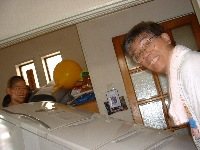 | さつまいも 家内の誕生日、4?才、いつものことであるが、朝のうちは覚えててよし!わすれんとこ! 何か買いに行こうと思うのであるが、次に思い出すのは仕事が終わって帰ってきてからである。 ところが今年は運が良かった。 冷蔵庫の商談で酒屋さんに立ちより、寸法を測りに台所へ そこにおいしそうなでかいサツマイモがおいてあった。それが目に入ったとたん、家内を思い出し たのである。 おいしそうな芋ですね〜 うちで作ったの、ひとつもってかえる? 今日は家内の誕生日なので喜ぶかも・・・ それなら、ちゃんとリボンつけて包装しなくちゃあね リボン付のサツマイモだ!! 見事な誕生日プレゼントの出来上がりである。 それだけではと思い、ついでに手作りのアートフラワーを買った。 最近は酒屋にこんなものまでおいてあるのである。ラッキーだった。 今年の誕生日は例年に無く盛り上がったのは言うまでも無い。 |