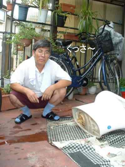 | うんこ とある日曜日帰ってみると 「トイレの水が流れん!!こりゃ私では手に負えん・・・」とカアチャン どうやら散々苦労した跡が伺える。 今まで何度か流れが悪くあふれそうになったことがあるがここまでガンコなのは初めてだ。 おわんをさかさまにしてその先に棒をつけたような道具で何度も何度も押してみるも一向に流れない。 何度か押して繰り返し水を流してみる。当然奥にはうんこもあるわけでして、うんこも 逆流して次々と浮かび上がってくるわけだ。 鼻をつまみながらの作業になった。 そのうんこ混じりの水を勺ですくい、バケツにとってはまた流してみる。何度も何度もその繰り返し・・・ 繰り返してる間に慢性化してきたのかうんこに慣れてきて臭みも薄らいできたのが不思議だ。 「こりゃあどうにもならん」意を決して便器ごと外してみることにした。 何を隠そう、うちのトイレはもともと和式であったのを10数年前に解体して洋式にやり変えたのは自分なのだ。 外したのはいいがかなり重い。しかもうんこが出口で詰まってるものだからしずくがたれて外に出そうにも大変だ。嫌がる息子に片方持たせて一気に外に出すことにした。 ![]() 見事に詰まっている。どうやら少なくなりかけたトイレットペーパーをそのまま流し込んで詰まったのだろう。 犯人はいつものやつだ。未成年なので実名は明かせないが、いつものやつの”こだわり”は”何でも少なくなりかけたら使い切る前に新しいのを降ろす”のである。 石鹸、シャンプー、歯磨き、しょうゆ、よく気が付くといえば聞こえはいいのだが・・・ 今回の我が家のハプニング、解決には相当時間もかかったが、これが専門の業者”ク○シアン”など 呼ぼうものならおそらく2〜3万円は取られたのではないだろうか? 一度お客さんで、パッキンの交換を頼んだら、やれあれが悪いこれが悪いと交換させられ結局5万円 ぐらいとられたそうな。 汗とうんこにまみれながらの作業だったが、これで2万円稼いだと思えば納得のいく仕事であった。 |